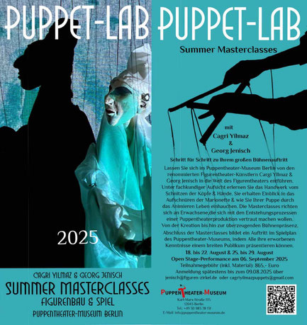Den Abschluss dieser Meisterkurse bildet eine Aufführung im Abendprogramm des Puppentheater Museums-Berlin am 9.09. 2024